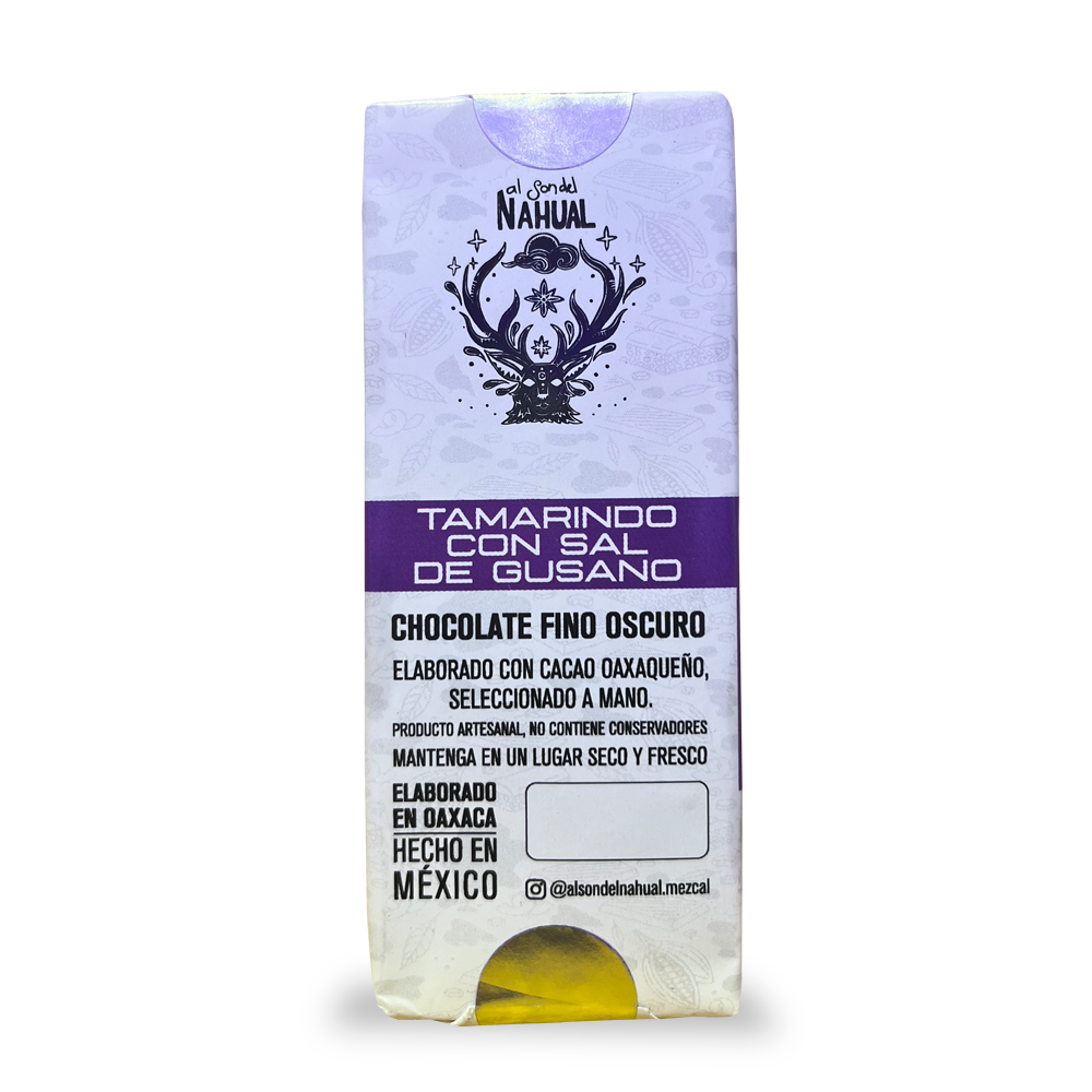 Producto artesanal a base de cacao sabor Chocolate – Tamarindo con Sal de Gusano