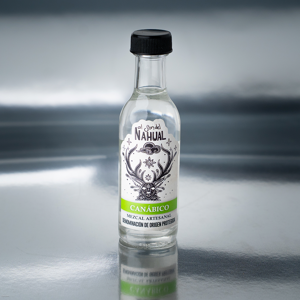 Espadín con cannabis: Infusionamos el mezcal espadín después de la segunda destilación con hojas de cannabis seleccionadas. El resultado es un mezcal herbal, aromático y suave, con un final fresco y relajado.